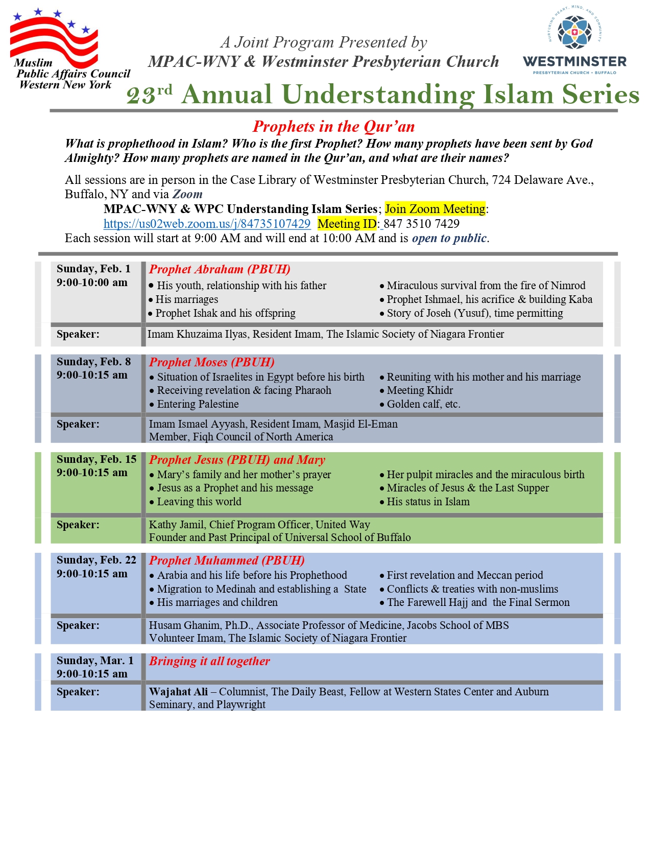 MPAC-WNY & WPC Understanding Islam Series; Join Zoom Meeting: